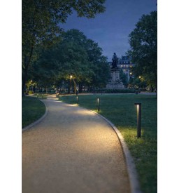 Met zijn moderne en minimalistische ontwerp past de DOPPIO LED-paal perfect in buitenruimtes. Aluminium behuizing, hoogwaardige IP65/IK08-afwerking. -