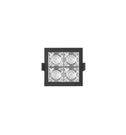 Zwarte vierkante LED downlight met lage luminantie. Zeer eigentijds en architectonisch, triac dimbaar.