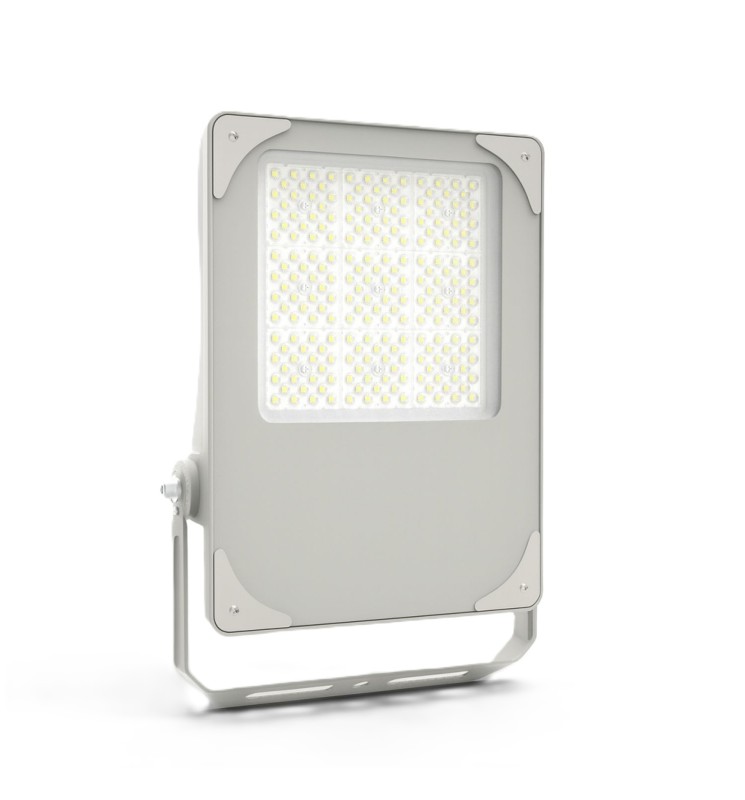 Krachtige schijnwerper met switch voor kleur en wattage. Asymmetrische hoek 150°x100°.